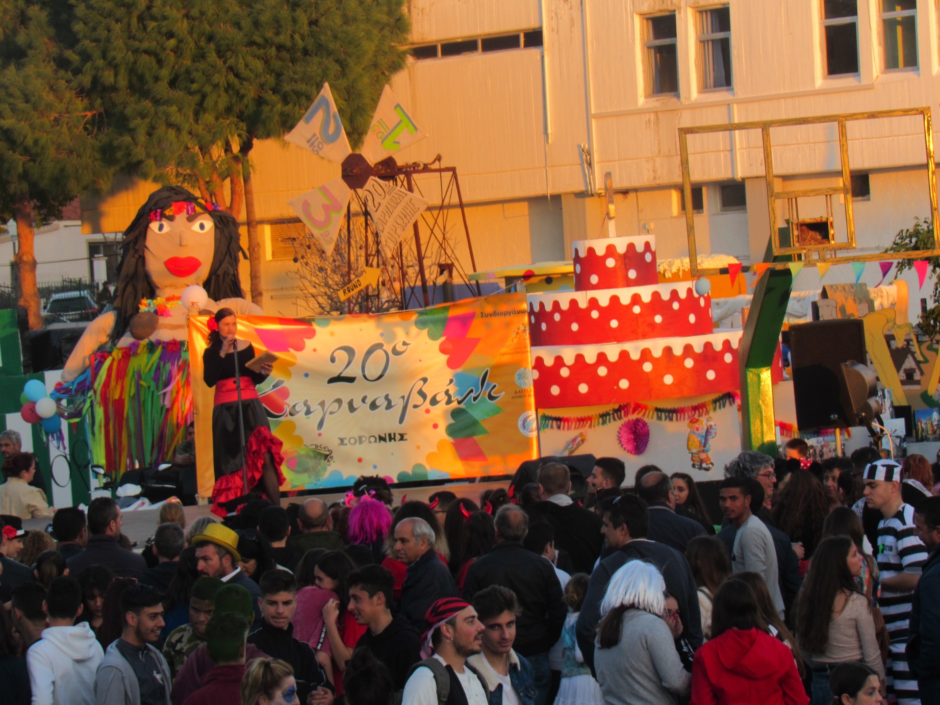Ευχαριστούμε από καρδιάς πραγματικά, τους εκατοντάδες καρναβαλιστές μας, όλες τις ομάδες, παρέες, σχολεία, συλλόγους που αφιέρωσαν πολύ από τον πολύτιμο χρόνο τους αλλά και χρήματά, για να παρουσιάσουν όλα αυτά που είδαμε στην παρέλαση. Είναι η ψυχή του καρναβαλιού, χωρίς αυτούς δεν υπάρχει καρναβάλι. Ευχόμαστε να είναι κάθε χρόνο εδώ και κάθε χρόνο να γίνονται όλο και περισσότεροι. Ιδιαίτερα ευχαριστούμε, τα τμήματα από το Νηπιαγωγείο σχολείο Σορωνής και το Δημοτικό σχολείο Σορωνής, τους πολιτιστικούς συλλόγους Δαματριάς «Η Καλλιγένεια» και Λαχανιάς «Ο Λεσπέρης», που μας έκαναν την τιμή να πάρουν μέρος στο καρναβάλι, και τη σχολή χορού της κ. Νταλαμάγκα Μιρόσαβιτς Κωνασταντίνας μαζί με τους γονείς που επέλεξαν τα παιδιά τους να συμμετάσχουν στην καρναβαλική παρέλαση της Σορωνής.